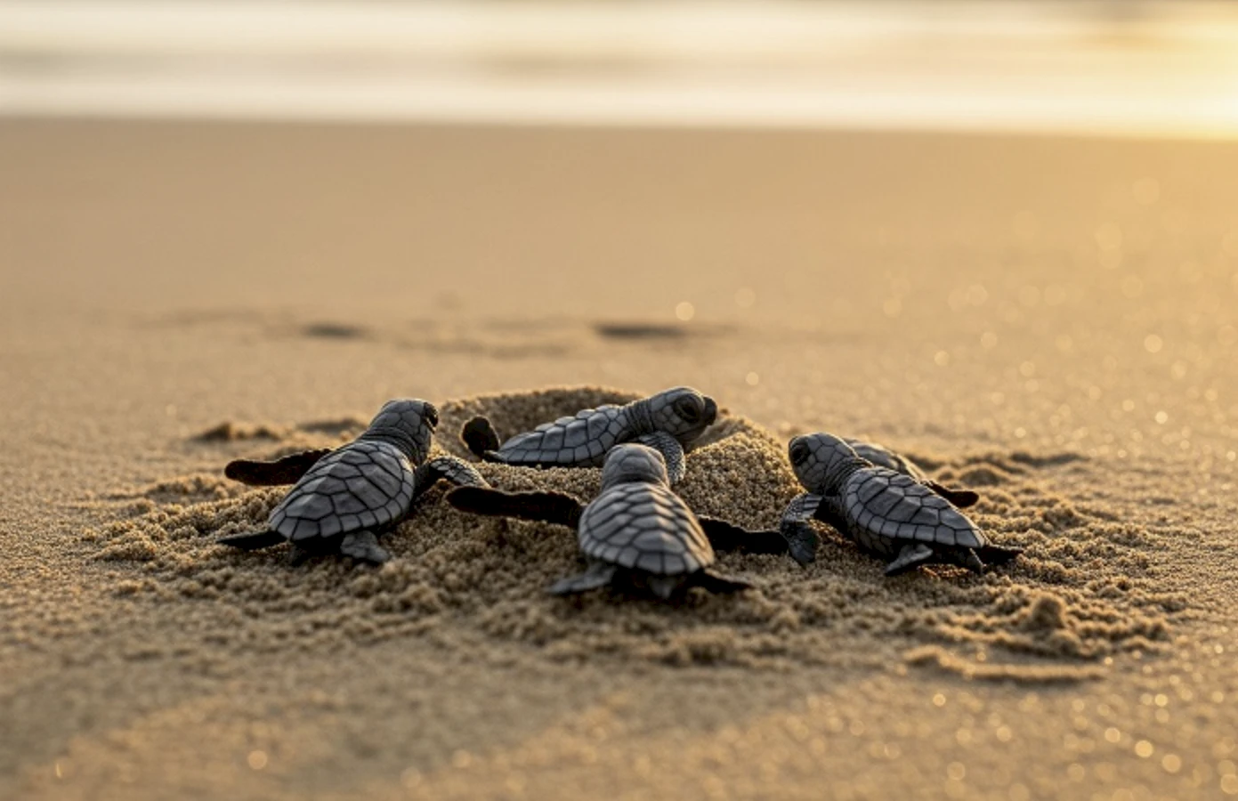 Golden Beach is a protected natural area, as sea turtles of the Caretta Caretta species lay their eggs here. During the nesting season, restrictions apply: lighting fires, using bright night lights, and setting up tents are prohibited to avoid disturbing the natural habitat.