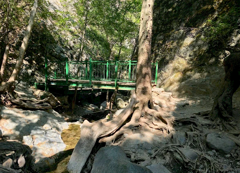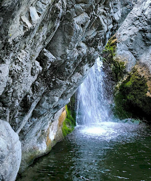 The trail is well maintained: there are handrails and steps on steep sections, small bridges across the river, and benches and trash bins every 300 meters. Along the way, you may encounter pines, cypresses, wildflowers, squirrels, hares, chameleons, and even golden eagles. At the base of the waterfall, a natural cold-water pool forms, where people swim in summer.