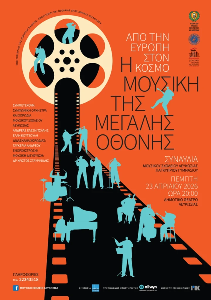 Koncert poświęcony władowi kulturowemu Europy w sztukę światową, z udziałem Orkiestry Symfonicznej i Chóru Mieszanego Szkoły Muzycznej w Nikozji. Program łączy europejską i grecką tradycję muzyczną ze światową muzyką filmową: pierwsza część to utwory symfoniczne z kina europejskiego i międzynarodowego, druga to piosenki filmowe podkreślające wspólne wartości i punkty orientacyjne kultury.