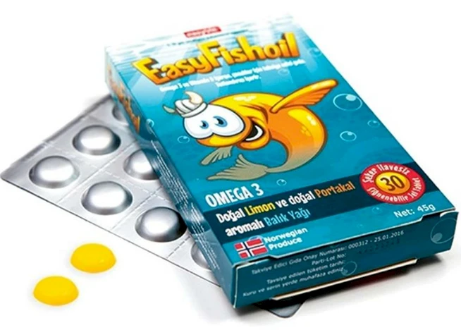 EasyFishoil — популярная детская линейка омега-3 в жевательной форме. Бренд easyVit указывает, что продукты EasyFishoil выпускаются в Норвегии и представлены в мягкой желейной форме, которую детям обычно проще принимать, чем классический рыбий жир в ложке или крупные капсулы. В аптеках Северного Кипра такие добавки часто рассматривают как удобный формат омега-3 для детей школьного и дошкольного возраста, если возраст на упаковке это допускает.