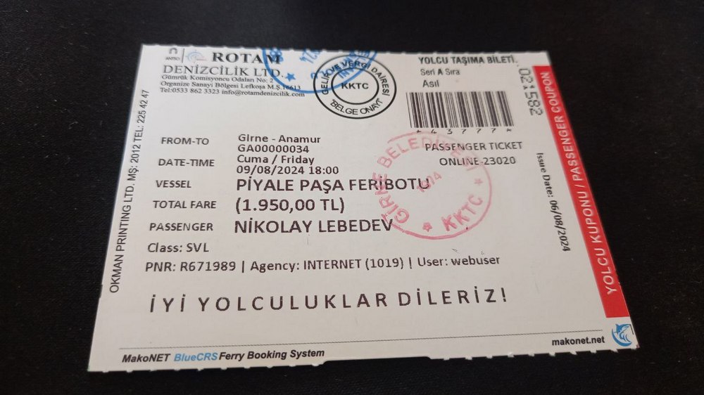 Siteden bilet satın aldıktan sonra tüm bilgiler e-postamıza gönderildi. Bilgileri yazdırmanız isteniyor ancak çok da gerekli değil. Yola çıkmadan önce, deniz terminalinin yanındaki binaya gidip pasaportlarınızı göstererek biletlerinizi almanız gerekiyor: biri yolcu için, diğeri ise kontrol için.