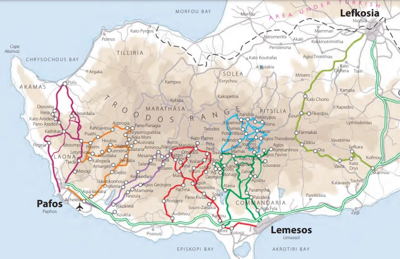 Кіпрська туристична організація розробила сім винних маршрутів по Республіці Кіпр, які охоплюють понад 50 місцевих виноробень.