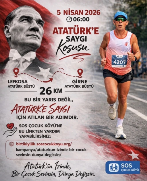 The event will take place under the slogan "In the footsteps of Atatürk — let one child smile, and the world will change." The run will be held on Sunday, April 5. The start will be at 06:00 at the bust of Atatürk in Lefkoşa, and the finish at the bust of Atatürk in Girne.