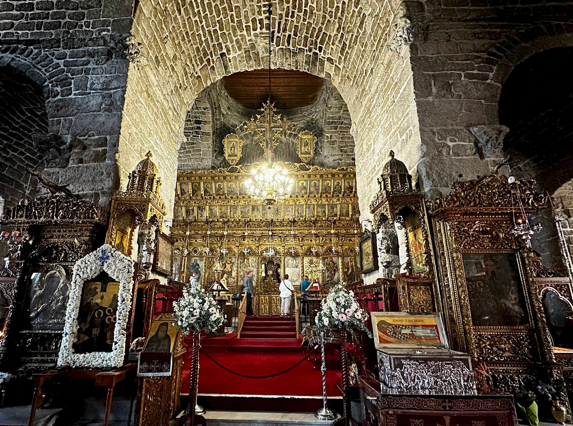 A restored 9th-century Byzantine stone church with a golden iconostasis, located in the city center.