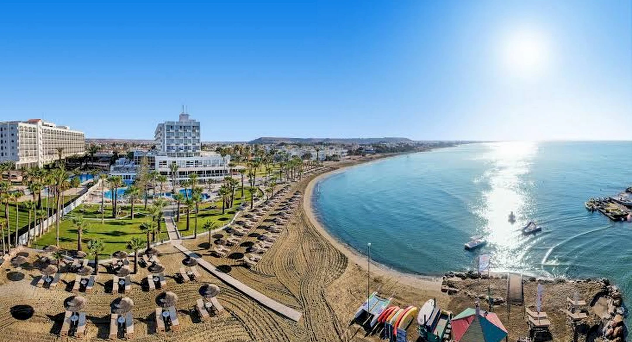 Golden Bay Beach Hotel is an exclusive five-star luxury seafront hotel, set amidst mature landscaped gardens on the beautiful island of Cyprus. Ideally located on the edge of Larnaca’s tourist area, the hotel is just 10 km from the city centre and 15 km from Larnaca International Airport. Immersed in the colours and culture of the Mediterranean, the five-star Golden Bay Beach Hotel in Larnaca is renowned for its outstanding facilities, luxurious ambience, impeccable hospitality, and fine cuisine.