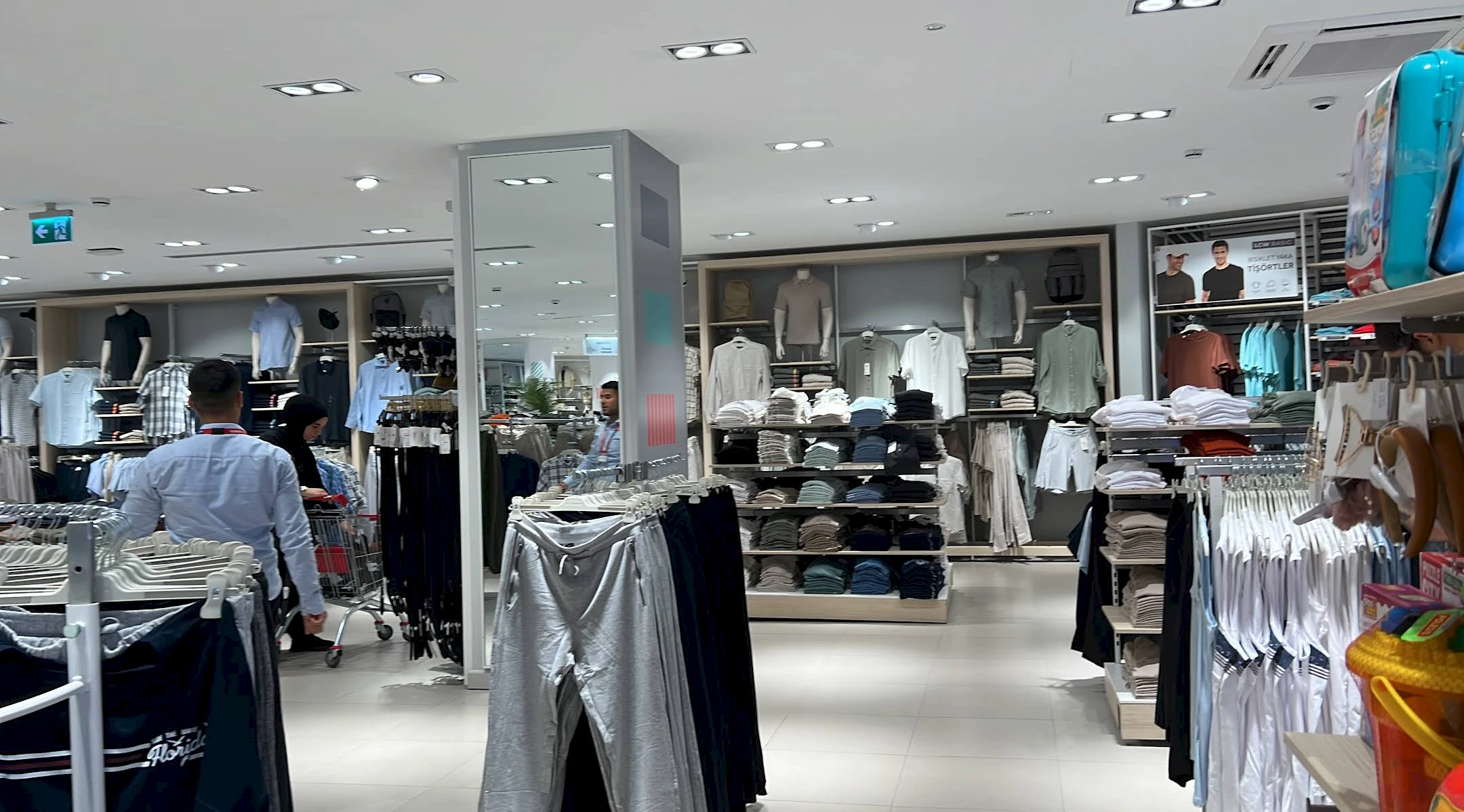 Tirdzniecības centrs ir mūsdienīga telpa, kur apmeklētāji var atrast dažādus apģērbu veikalus, tostarp ikdienas un sporta apģērbu, kā arī nodaļas ar kosmētikas precēm un elektroniku.
